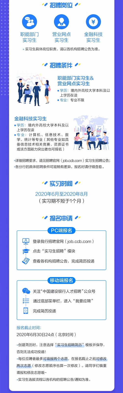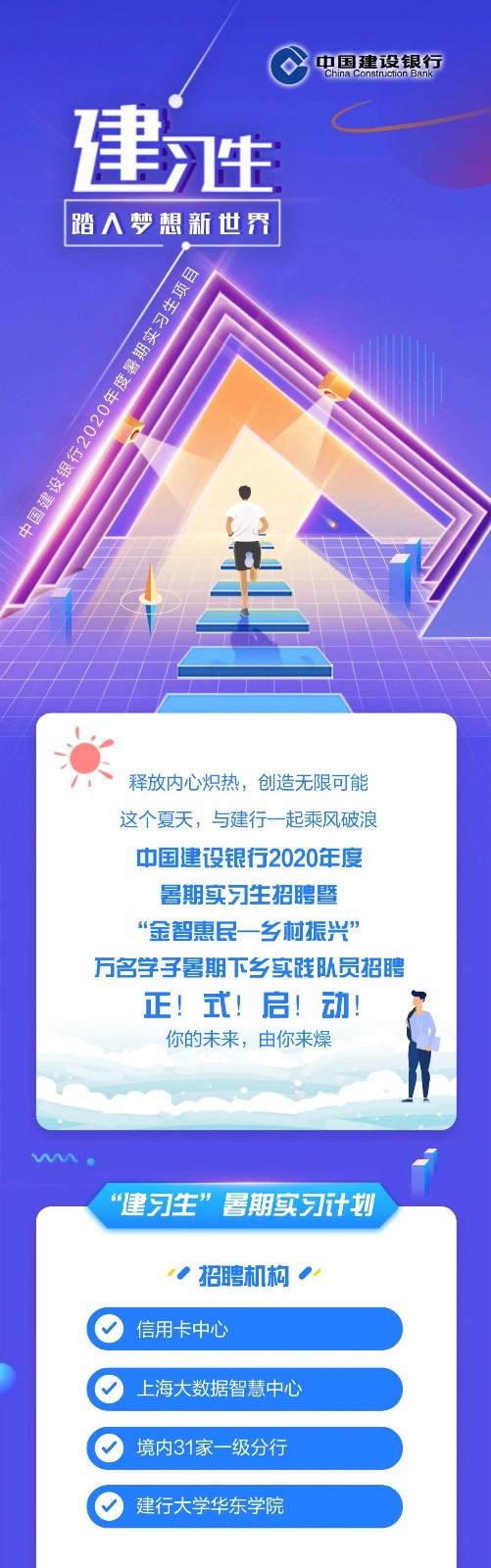 中国建设银行2020年度暑期实习生招聘正式启动!