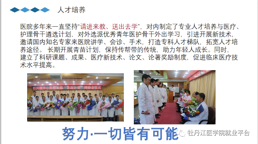 我院一直秉承“院有优势、科有特色、人有专长”的发展理念,院内开展多学科联合诊疗,院外与国内权威医疗机构建立协作关系,开通远程会诊,为疑难、复杂病情的患者提供最优诊疗方案。 科室专科中心打造上,普外中心、骨科中心、心脏中心、神经中心等多中心并驾齐驱,各展专业特长,大力开展微创技术、神经血管介入治疗、精准医疗、无痛检查与治疗,多项新技术的开展与应用,在区域内处于领先水平。 院内学科建设发展的同时,更加强了对外合作,近年来我院与阜外医院、协和医院、宣武医院、解放军301医院、中科院肿瘤医院、哈尔滨医科大学各附属医院等国内知名医院长期保持良好的协作关系,多专业开展科研课题,邀请国内知名专家来院出诊、手术、带梯队,选送优秀骨干进修学习。我院以“常见疾病临床路径化、常规手术微创化、疑难复杂疾病医疗协作化、检验检查标准化”作为临床诊疗的发展方向。 2001年我院引进第一台DSA开展心脏介入手术,如今已建成双鸭山市地区首批国家级胸痛中心,年介入手术量1500例。 2002年开展佳木斯东部地区第一例腹腔镜胆囊切除术,现已常规开展腹腔镜下多项肿瘤治疗技术,胆道镜下胆管取石、经皮肾镜、宫腔镜、鼻窦镜、关节镜、椎间盘镜等多种微创手术。 特色品牌:开展了烧伤异体微粒皮植皮术和流行性出血热透析治疗。