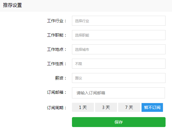 可选择订阅周期,系统匹配职位信息后根据推荐设置自动推送。