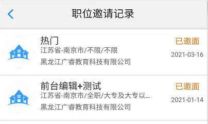 列表显示用人单位发送的全部面试邀请通知,如下图所示: