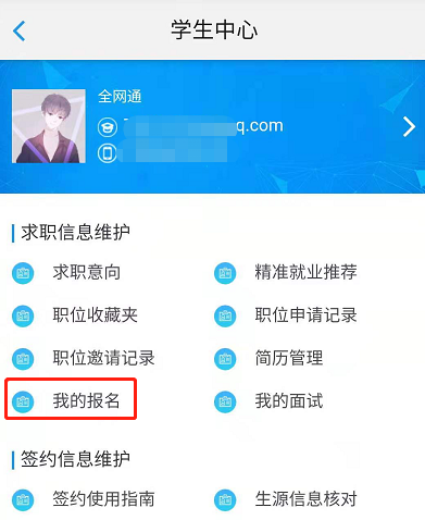 查看宣讲会、招聘会的报名情况,如下图所示: