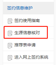 学生收到学校的生源核对通知后,在学校就业网门户、学生账号主页找到“生源核对”的板块并登录进系统,如下图所示: