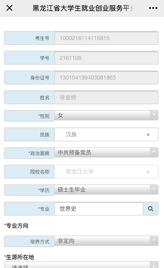 进入注册页面后,依次按要求填入信息,填入的信息要务必确保真实,提交后会自动和数据库信息进行比对,比对不通过请联系学校就业管理部门,比对通过后即注册成功。