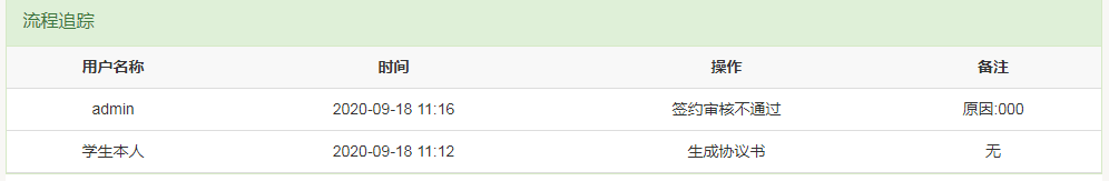 审核不通过:学生可以在网上签约中查看审核 不通过的原因并重新与企业进行签约提交审核,如下图所示: