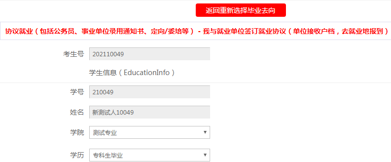 使用网签的学生可以重新选择毕业去向,点击【保存并送审】等待学校进行审核。
