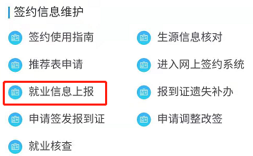 学生无论是找到工作还是没有找到工作,都需要学生登录账号填写就业信息,点击【就业信息上报】功能,如下图所示: