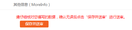 请仔细核对您填写的数据,确认无误后点击页面最下方【保存并送审】进行送审,等待管理员审核,如下图所示: