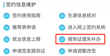 报到证遗失补办的流程与【申请调整改签】的流程一致,具体详见调整改签。