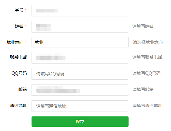学生可以修改的字段有:本人手机、电子邮箱、QQ号码、家庭地址、家庭邮编、家庭电话、家庭联系人,其他的信息只可以核对,如发现存在问题请联系学校就业老师进行修改。