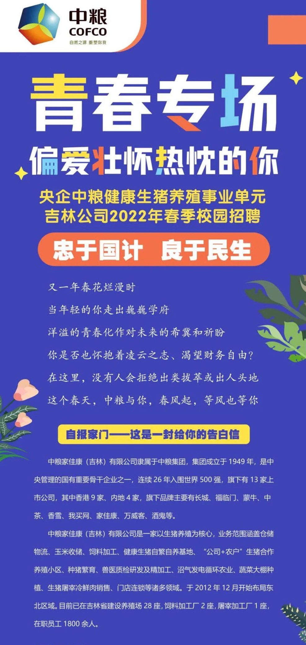 央企直招 | 中粮养殖吉林片区2021-2023届专项招聘