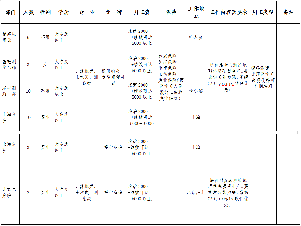 工程测量技术5人,铁道工程技术5人,工程造价8-10人(全部要男生)