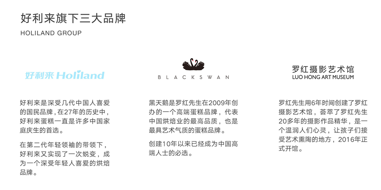 2009年12月,好利来总裁,同时也是知名摄影家罗红先生在拍摄到一组雪地里的黑天鹅作品后,受到启发,创建了中国最顶级的蛋糕品牌“黑天鹅尊贵至美”被媒体称为带动了中国蛋糕的一次“文艺复兴”。