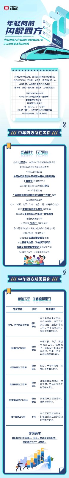 【校招】中车四方所2020春季校招,开放14大岗位!