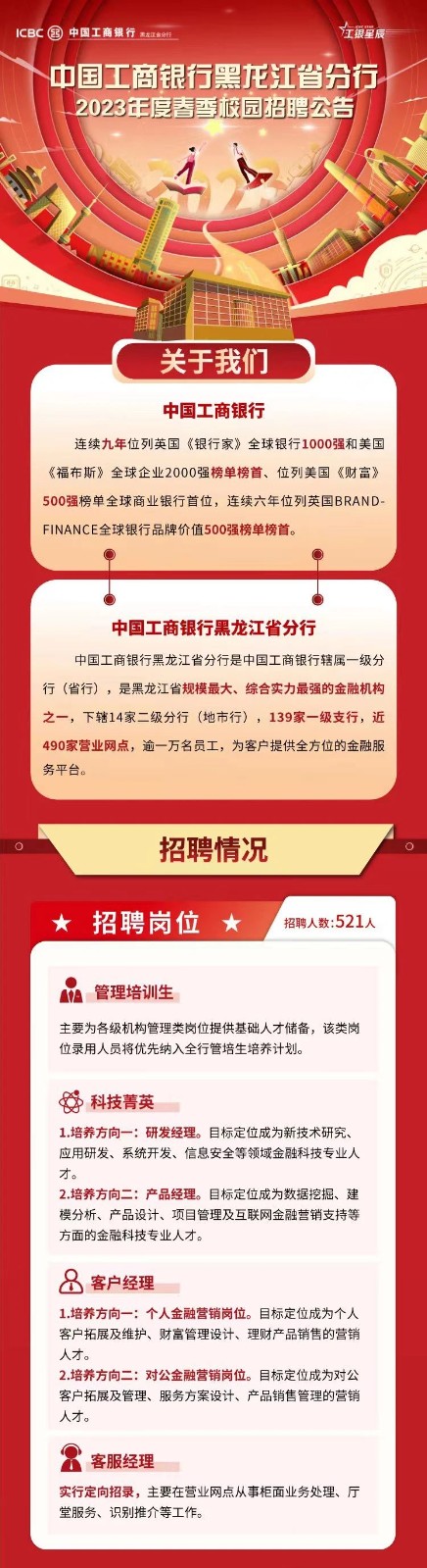 中国工商银行黑龙江省分行校园招聘