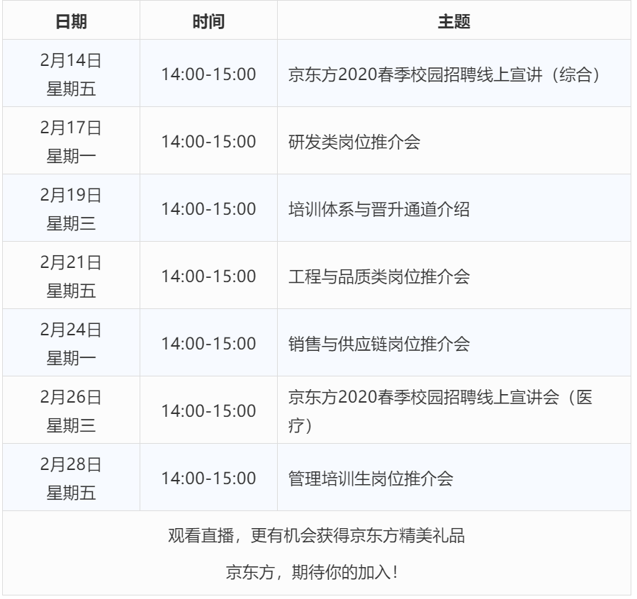 关注微博账号@京东方校园招聘,获取更多实时2020届校招资讯。