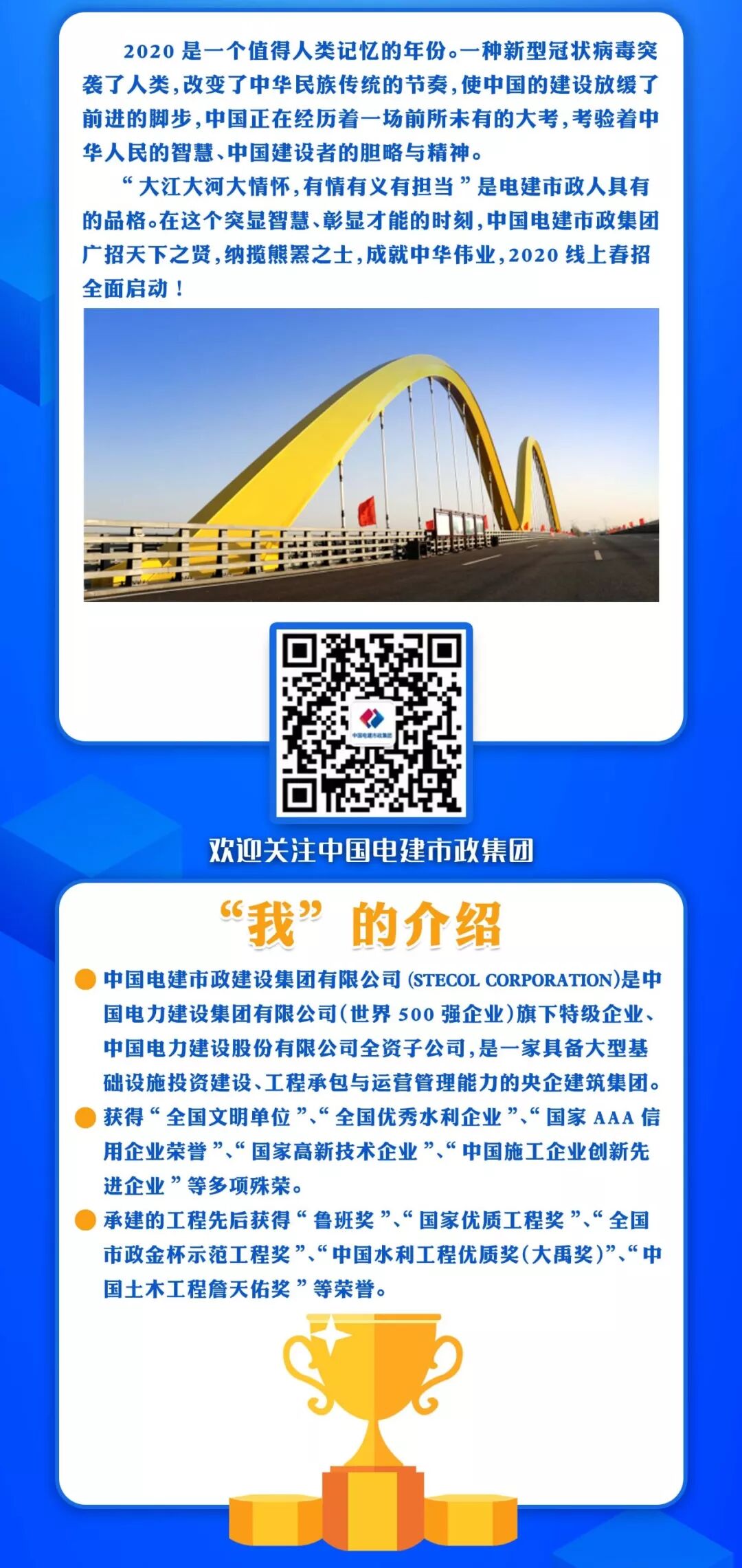 2020中国电建市政建设集团有限公司线上招聘启程!