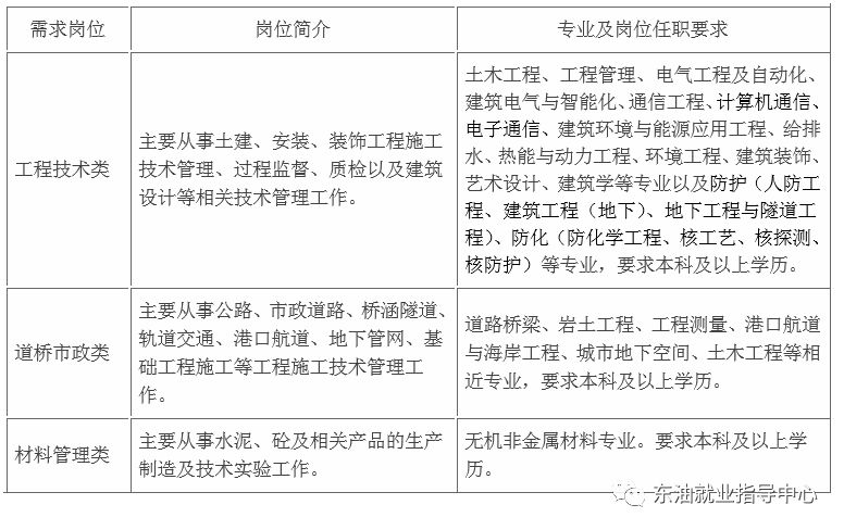 土木工程、城市地下空间 | 本科 | 80 | 服从安排,吃苦耐劳,施工技术员 | |||