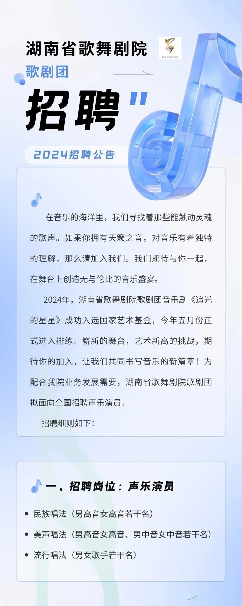 湖南省歌舞剧院歌剧团招聘声乐演员