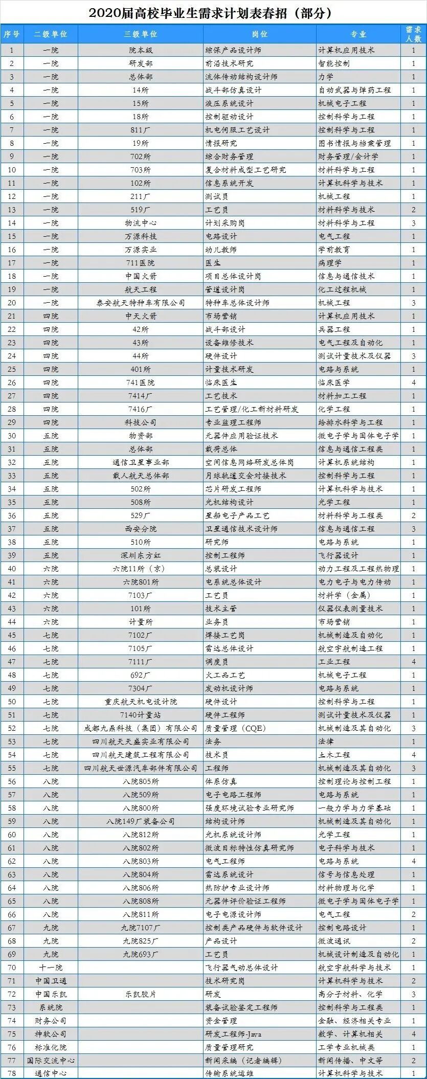 航天科技集团所属各单位2020年需求职位已在中国航天人才网校园招聘栏目发布,并支持手机移动端