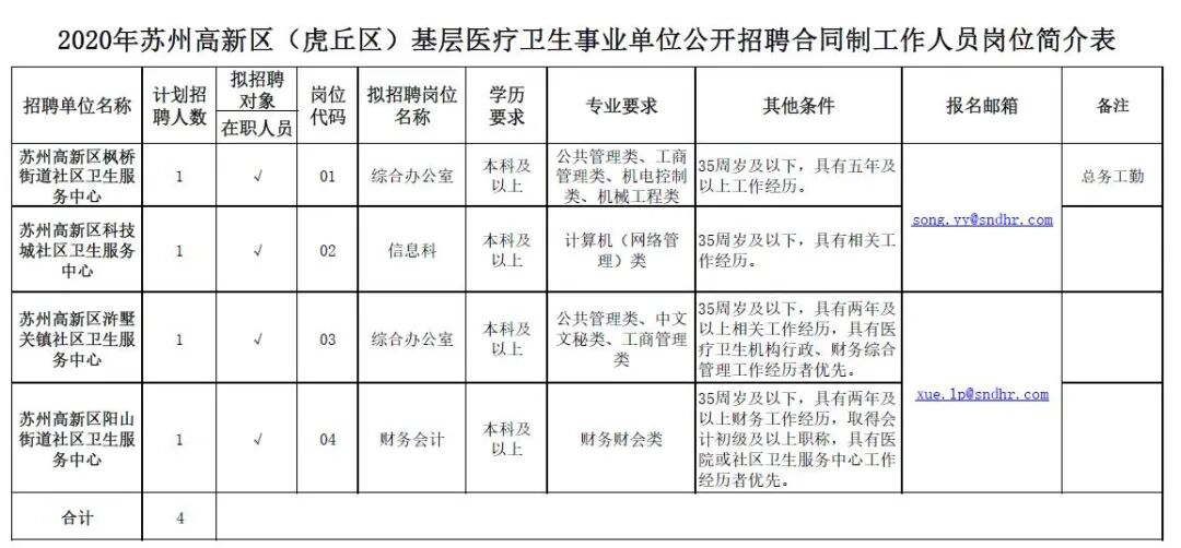 苏州高新区基层医疗卫生事业单位(东部医联体基层成员)因工作需要,面向社会公开招聘合同制工作人员24名。