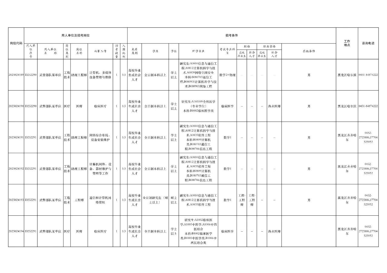 2025年毕业的定向生、委培生,在职军队文职人员(公告发布之日)原则上不得报考。