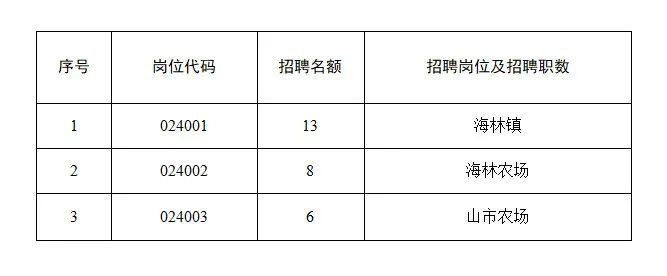 为进一步贯彻落实国家、省市委关于加强社区工作者队伍建设的部署和要求,按照《牡丹江市2024年度公开招录社区缺额人员实施方案》要求,着眼于进一步优化我市社区工作者队伍,充实社区工作力量,提升社区治理和服务能力。经市委、市政府同意,决定面向社会公开招聘社区工作者,现将有关事项公告如下:海林市计划面向社会公开招聘社区工作者27人,其中,海林镇社区13人,海林农场社区8人,山市农场社区6人。