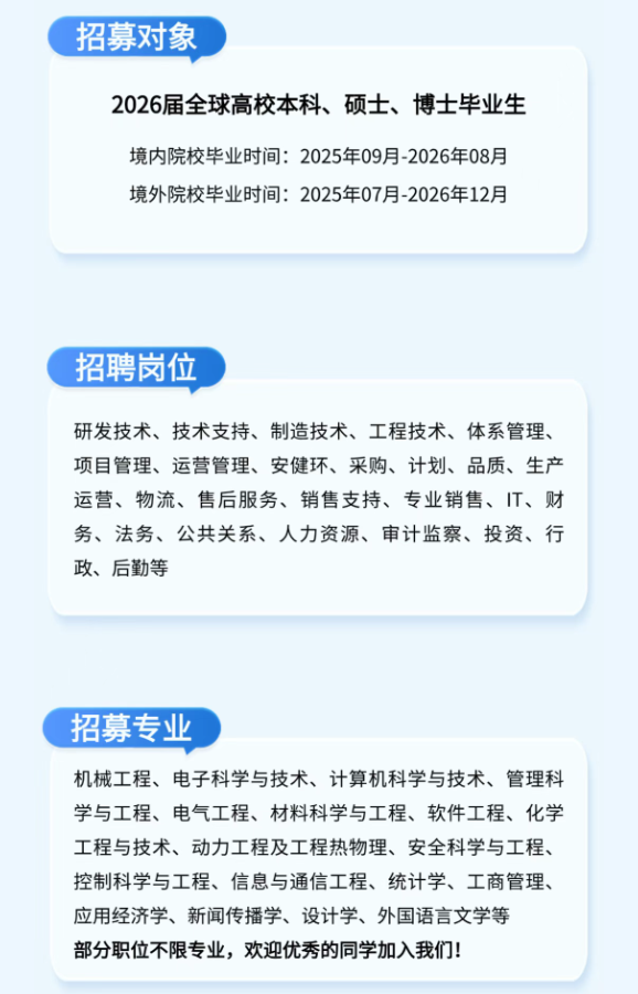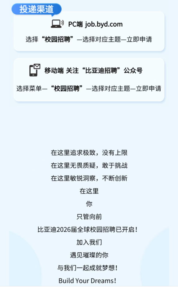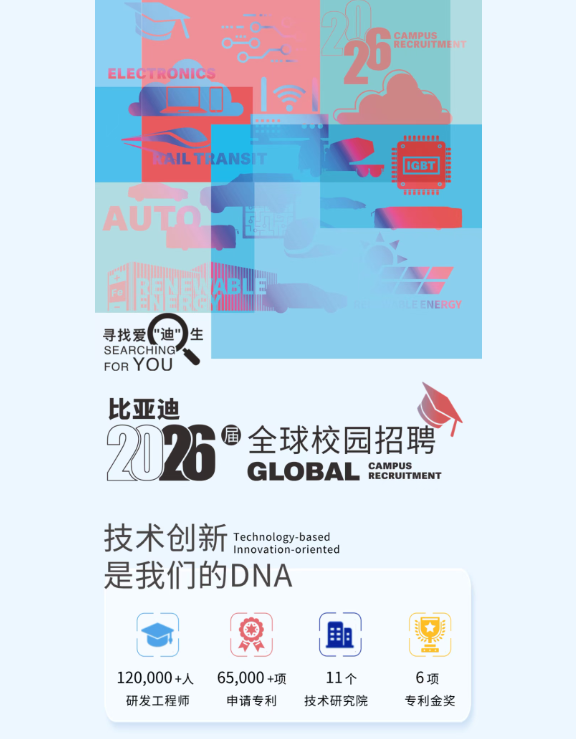 比亚迪2026届全球校园招聘公告