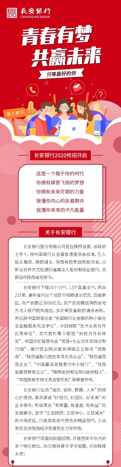 【专业不限-学生干部优先】长安银行2020校园招聘启事