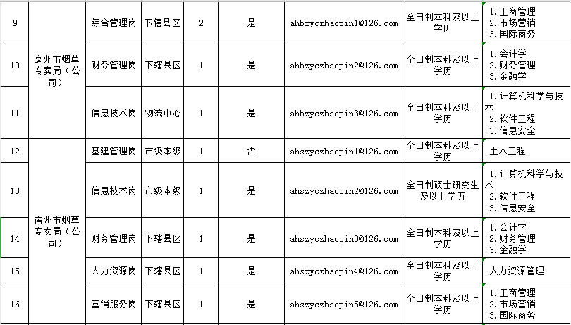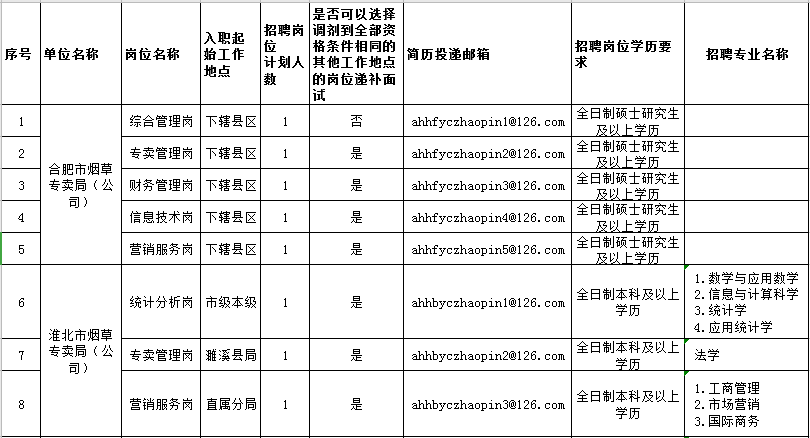 资格审核及笔试依据招聘岗位资格条件要求,对报考人员进行资格审核,择优确定笔试人员。符合招聘岗位资格条件报考人数低于招聘岗位计划人数8:1比例的,调减该岗位招聘计划人数,直至该岗位停止招聘。在安徽省烟草专卖局(公司)官方网站发布笔试公告,公示笔试人员名单,公示期为3个自然日。笔试公告发布后,短信通知入围笔试人员在规定时间内发送确认参加笔试的回执邮件。在规定时间内发送回执邮件且明确表示参加笔试的人数低于招聘岗位计划人数8:1比例的,调减该岗位招聘计划人数,直至取消该岗位笔试。