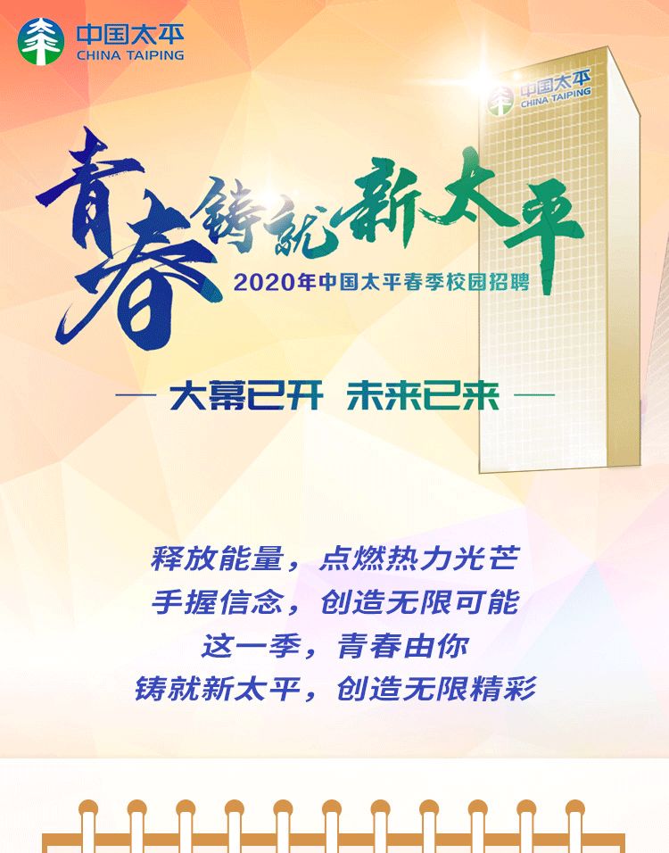 招聘信息 | 中国太平2020年春季校园招聘信息公告