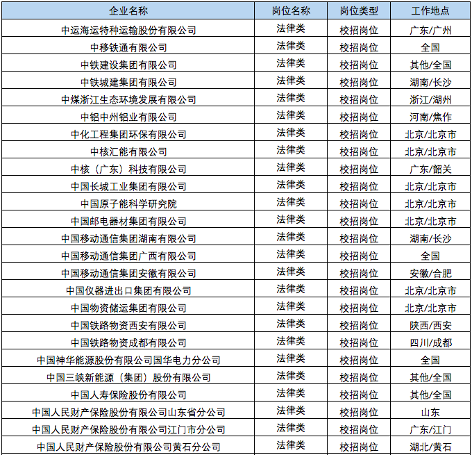 特别精选:法律类招聘岗位情况汇总工作地点遍布全国及海外↓下滑寻找你所意向的岗位吧↓社招岗位(点击图片查看详情)