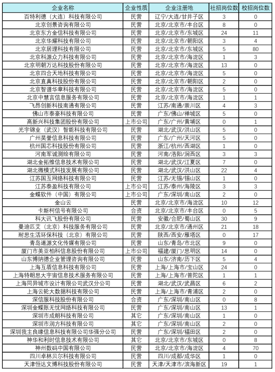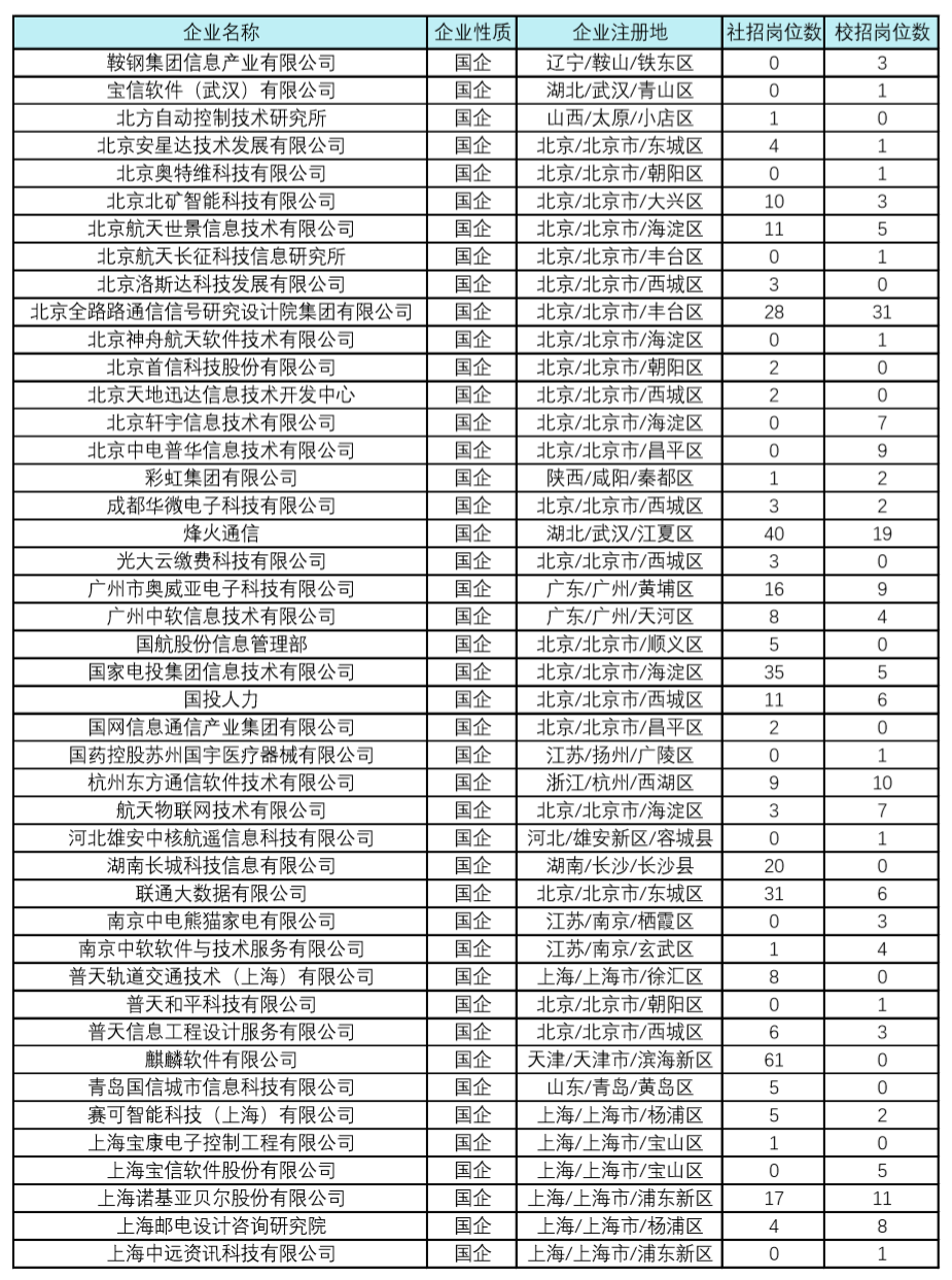 特别精选:软件和信息技术服务类企业招聘情况汇总↓下滑寻找你所意向的岗位吧↓国企单位
