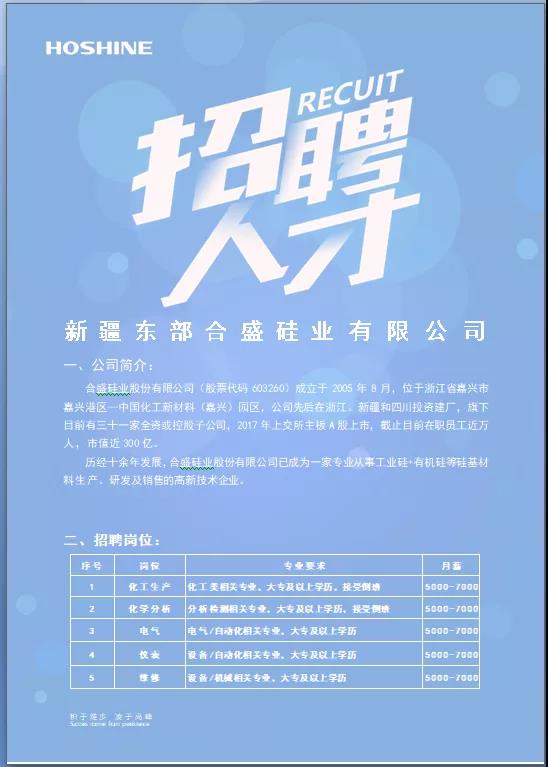 【化工类-电气类-机械类】合盛硅业有限公司招聘