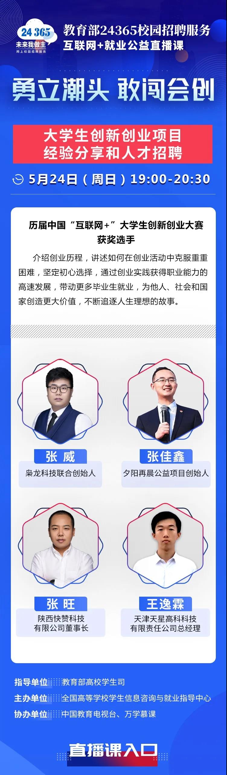 教育部24365就业公益课程:勇立潮头 敢闯会创——大学生创新创业项目经验分享和人才招聘