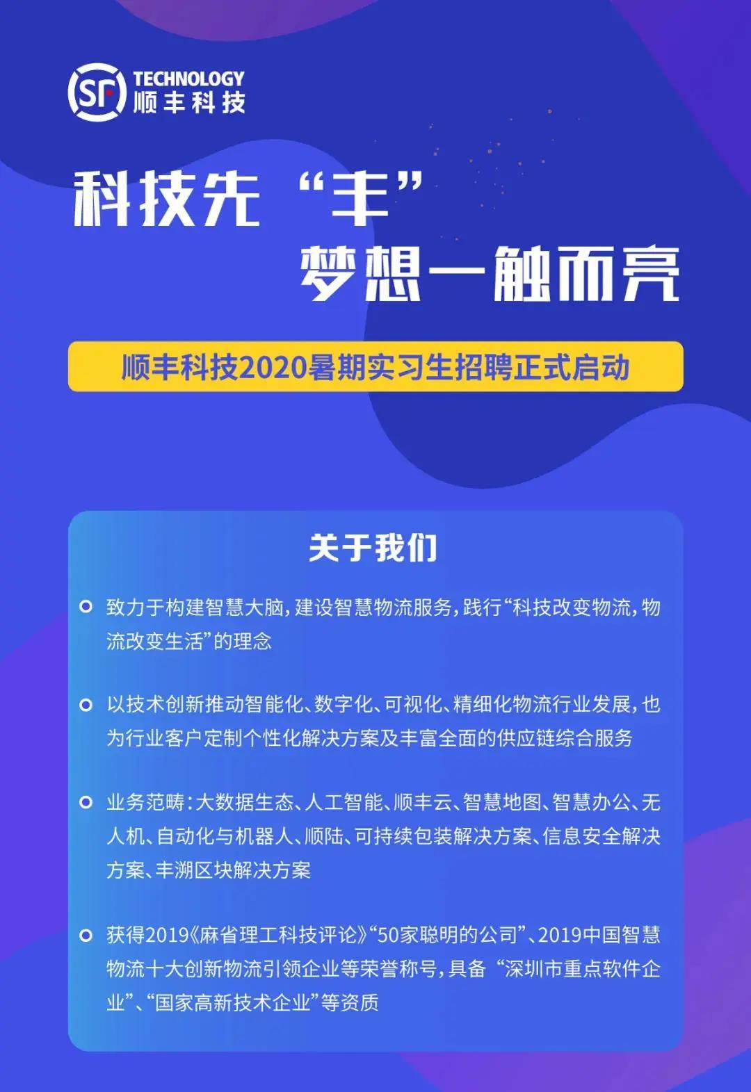 【信息】顺丰科技—— 2020暑期实习生招聘
