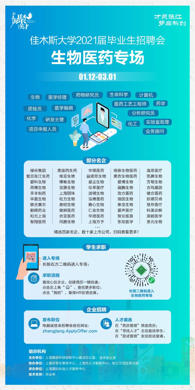 【01月12日-03月01日】生物医药专场 | 佳木斯大学2021届高校毕业生系列招聘活动