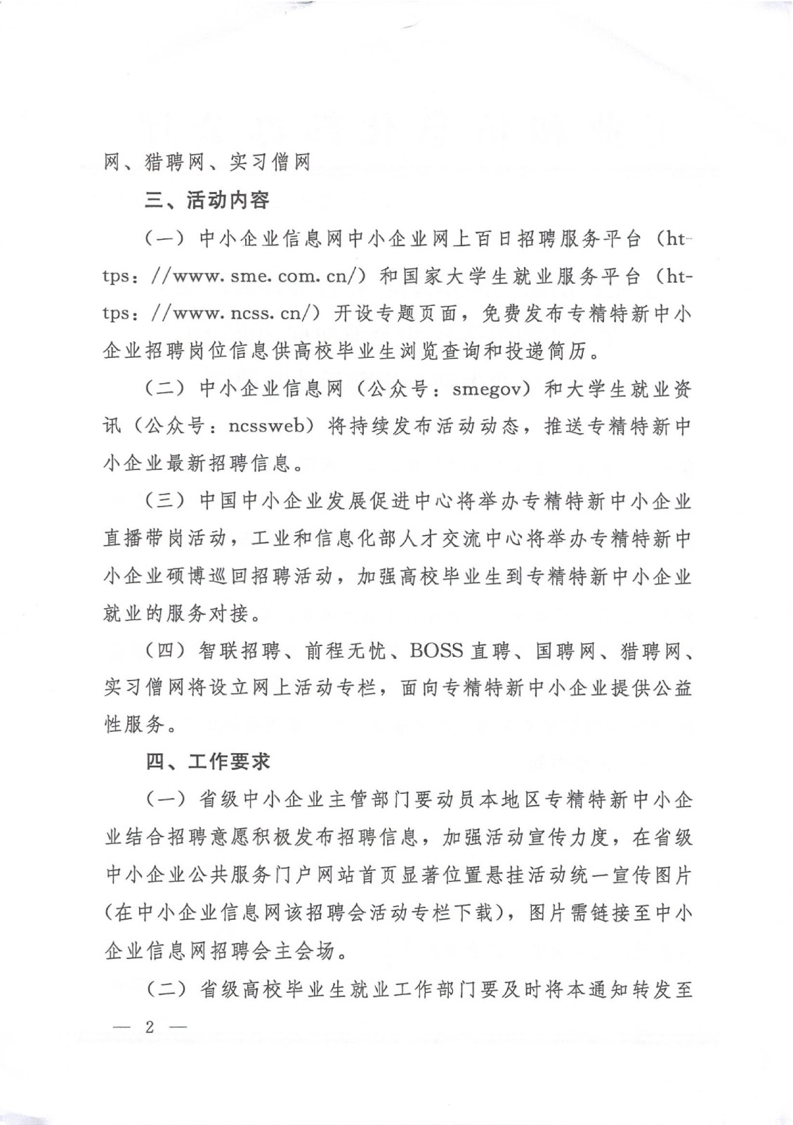 工信部办公厅 教育部办公厅关于举办专精特新中小企业面向2023届高校毕业生网上招聘活动的通知