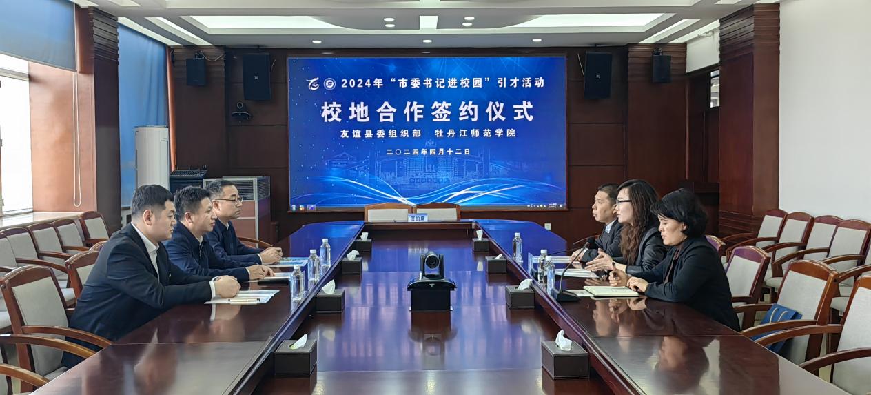 为进一步加强学校与地方合作,促进毕业生留省就业,满足地方经济发展人才需要,4月12日,牡丹江师范学院与友谊县校地合作签约仪式在学校会议室举行。友谊县委常委、组织部部长李浩,常务副部长赵大光,友谊县人社局副局长江南,牡丹江师范学院招生就业处处长孙蕾参加签约仪式。