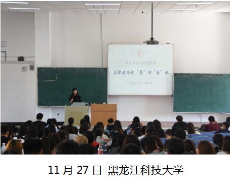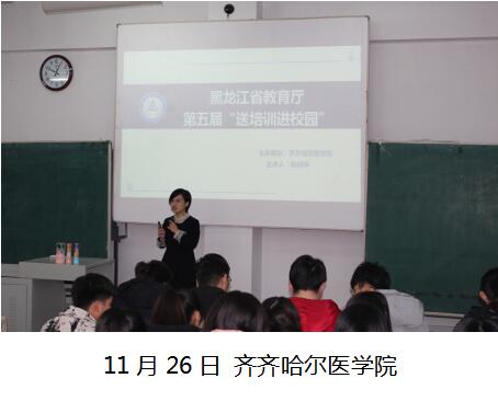 12月23日,省教育厅第五届“送培训进校园”活动圆满结束。该活动于11月中旬启动,历时一个月时间,由省大学生就业创业指导中心组织就业创业指导讲师团,分赴哈尔滨、齐齐哈尔、佳木斯、绥化等11个地市的63所高校开展专题培训136场,累计培训师生达20000余人次。活动在组织形式、讲师组成及培训内容等方面较往届均有提升,切实发挥了提高大学生就业创业能力、加强高校就业创业指导师资队伍和课程体系专业化建设的作用。