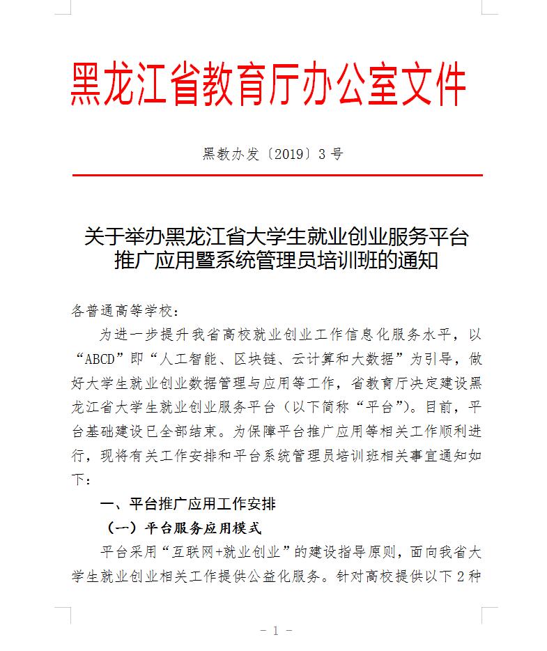 关于举办黑龙江省大学生就业创业服务平台推广应用暨系统管理员培训班的通知