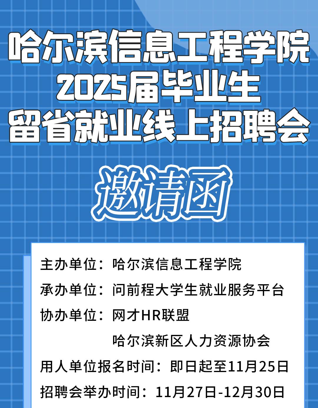 【邀请函】哈尔滨信息工程学院2025届毕业生 留省就业线上招聘会邀请函