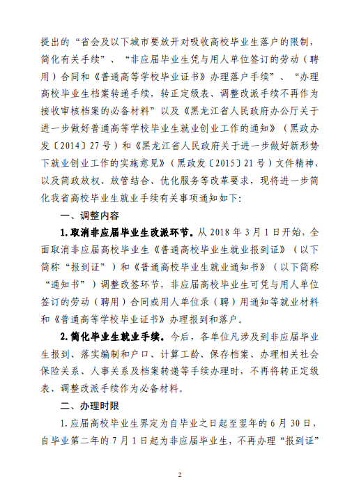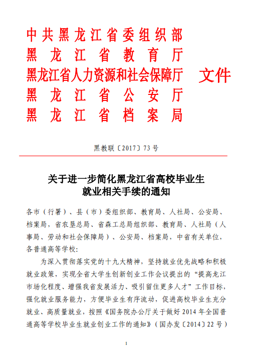 关于进一步简化黑龙江省高校毕业生就业相关手续的通知