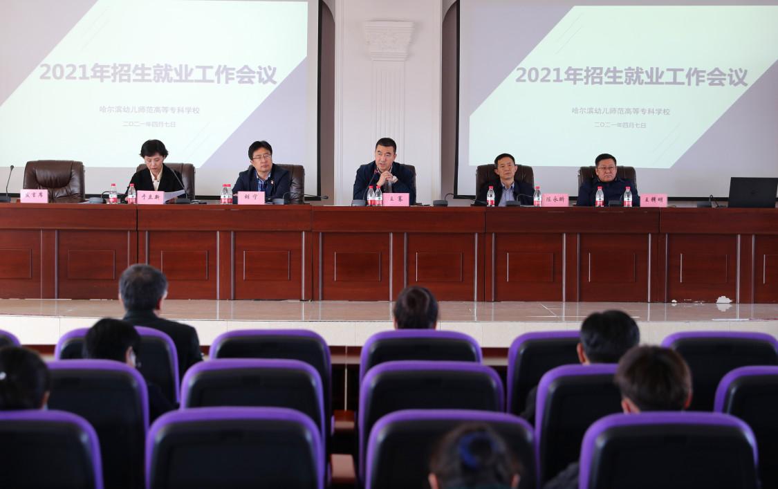 会上,招生办(就业指导中心)处长刘波、副处长王晓锋总结2020年招生就业工作,宣读2021年招生就业方案。艺术系主任秦岭、辅导员王会、幼儿园园长王颖做就业工作分享,表彰就业工作先进个人,各系部负责人签订就业工作责任状。