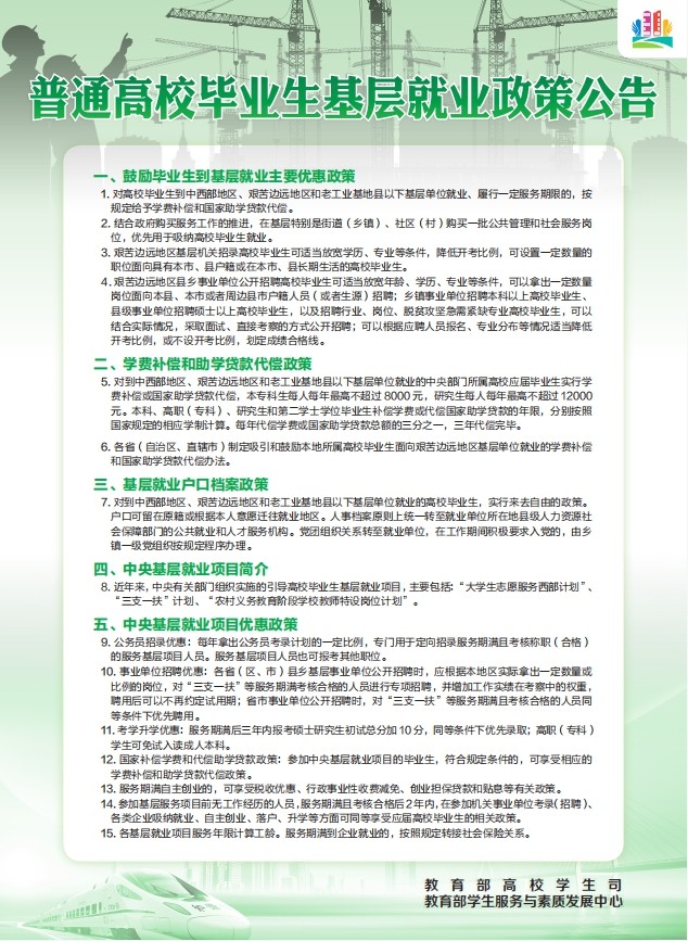 普通高校毕业生就业、创业、入伍政策及就业服务公告