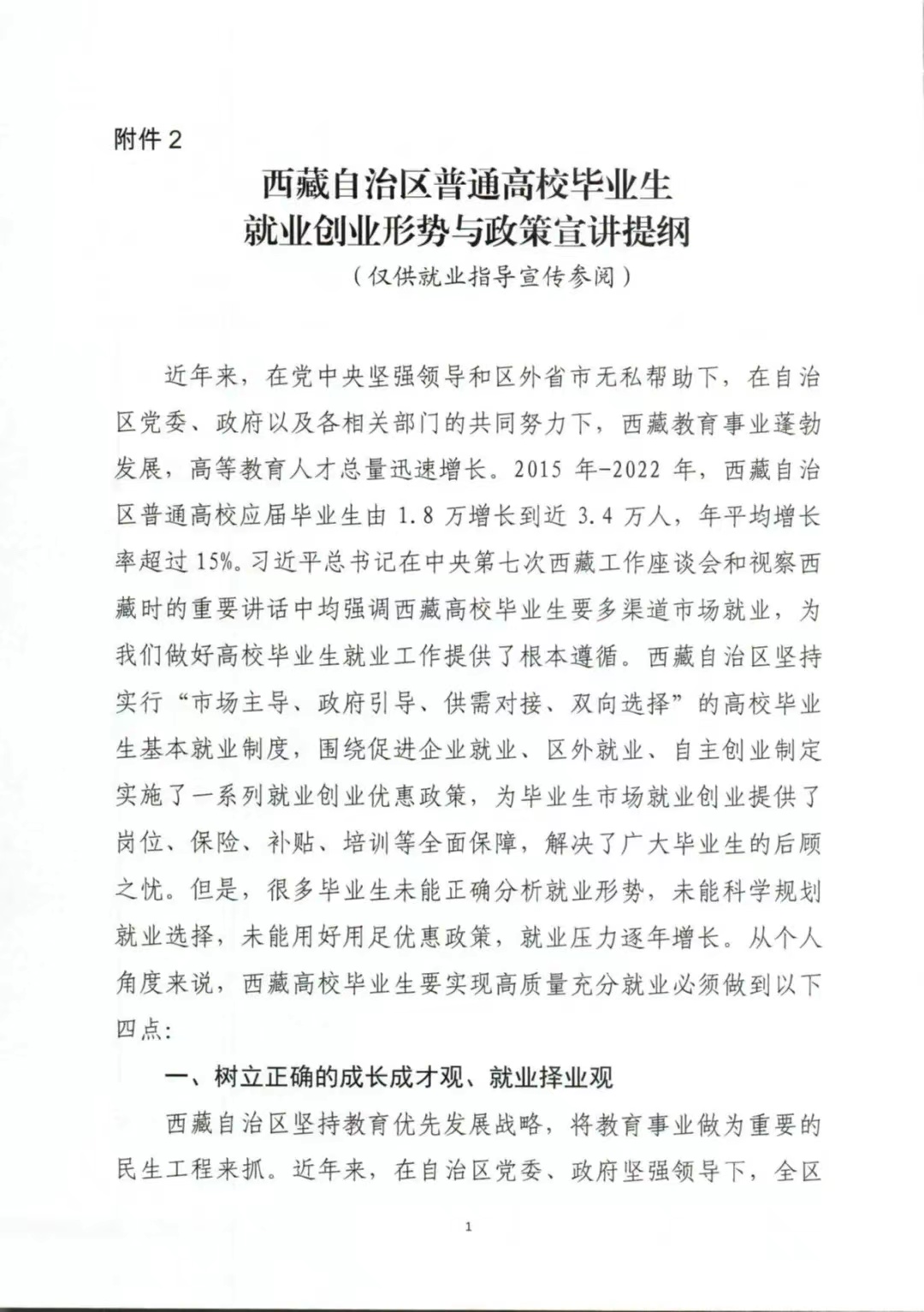西藏自治区普通高校毕业生就业创业形势与政策宣讲提纲