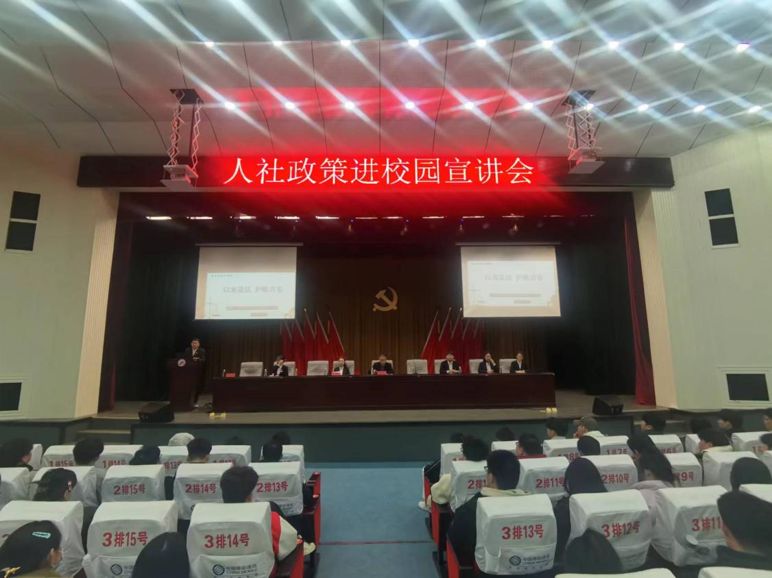 为贯彻落实教育部和省教育厅对高校学生就业创业工作安排,有效促进我校毕业生更加充分和更高质量就业创业,进一步加大就业创业、社会保险、劳动权益保障和毕业生档案等政策的宣传力度,提高政策知晓度,牡丹江大学联合市人社局在我校开展“人社政策进校园”宣讲活动,出席本次宣讲活动的是市人社局副局长高城、人社局5位讲师及我校就业处副处长江晶玫,我校500余名学生参加此次宣讲活动。