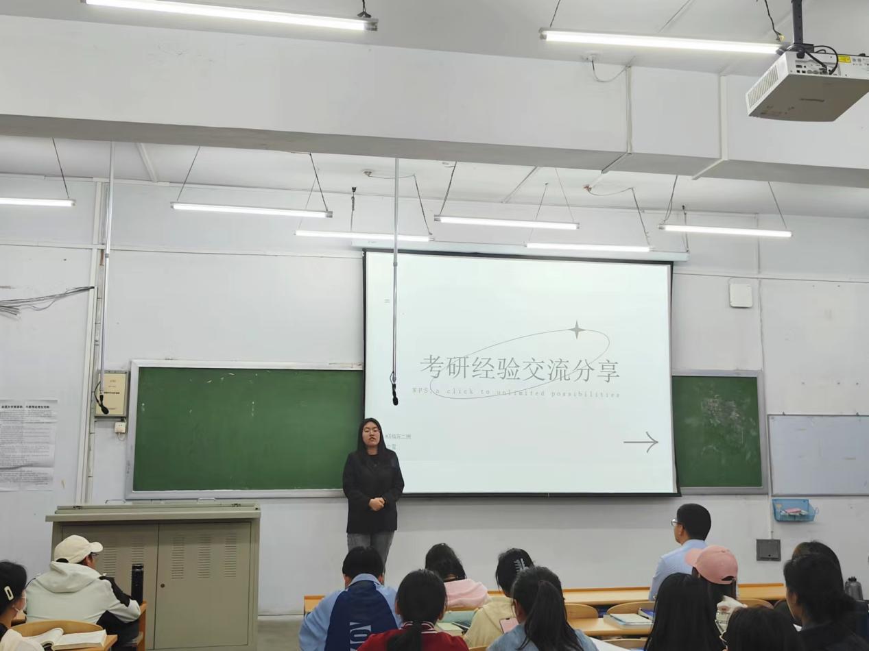 她们结合自己的实际情况,从备考方法、时间管理、心态调整等方面进行了精彩分享,讲述备考过程中如何克服遇到的挑战与困难。不仅提供了实用的建议,还以自己的亲身经历鼓励在座的学子们要勇敢追梦,不畏困难,坚持到底。通过经验分享让学弟、学妹们对考研充满了信心与期待。同学们纷纷就自己关心和困惑的问题进行提问,位同学进行了耐心细致地解答。