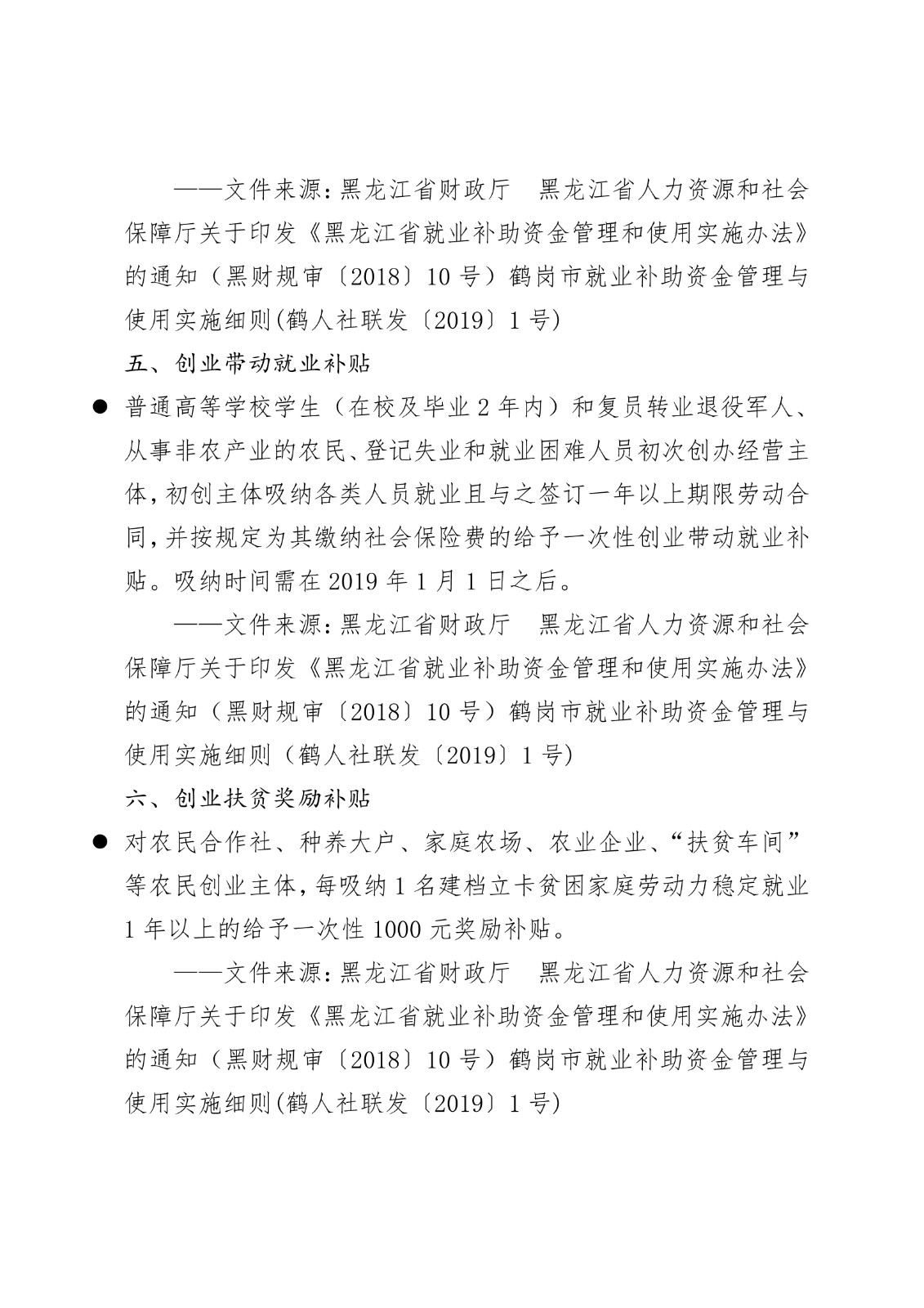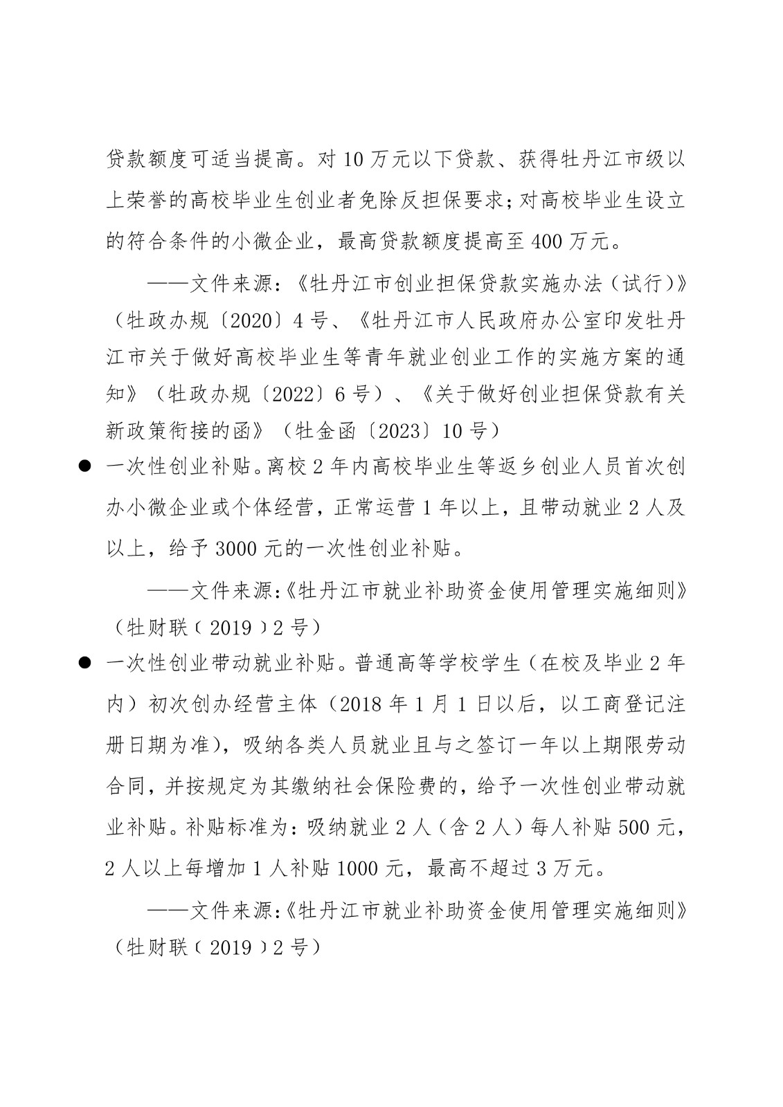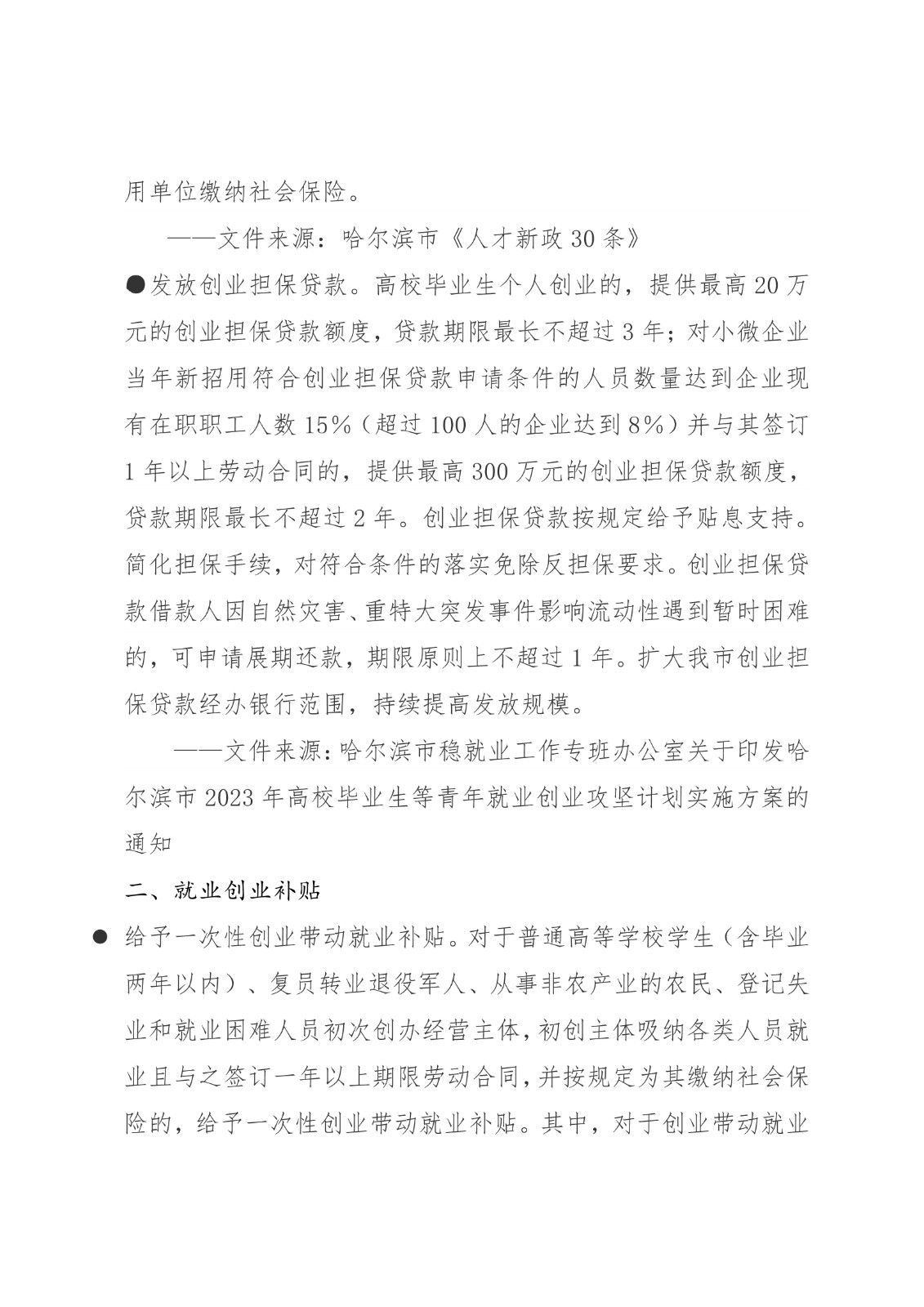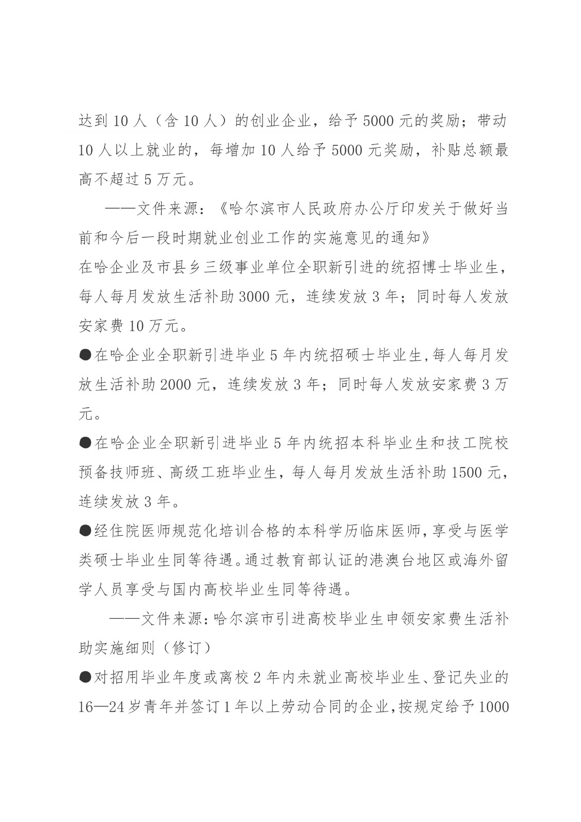 黑龙江省各地市高校毕业生就业创业政策摘录