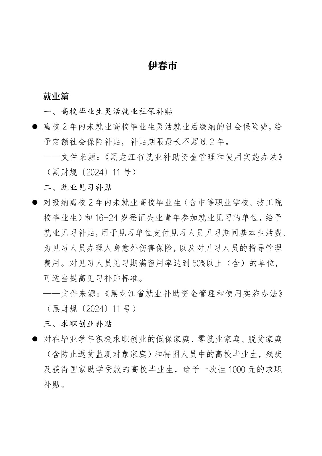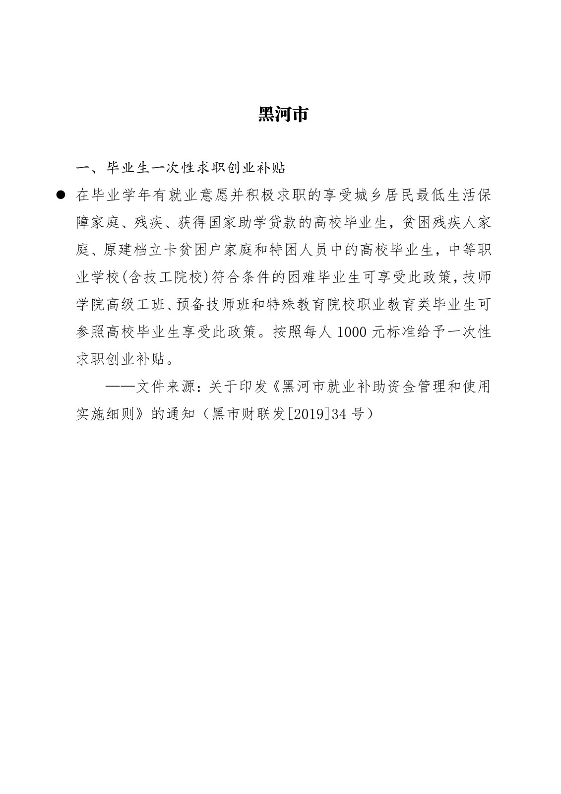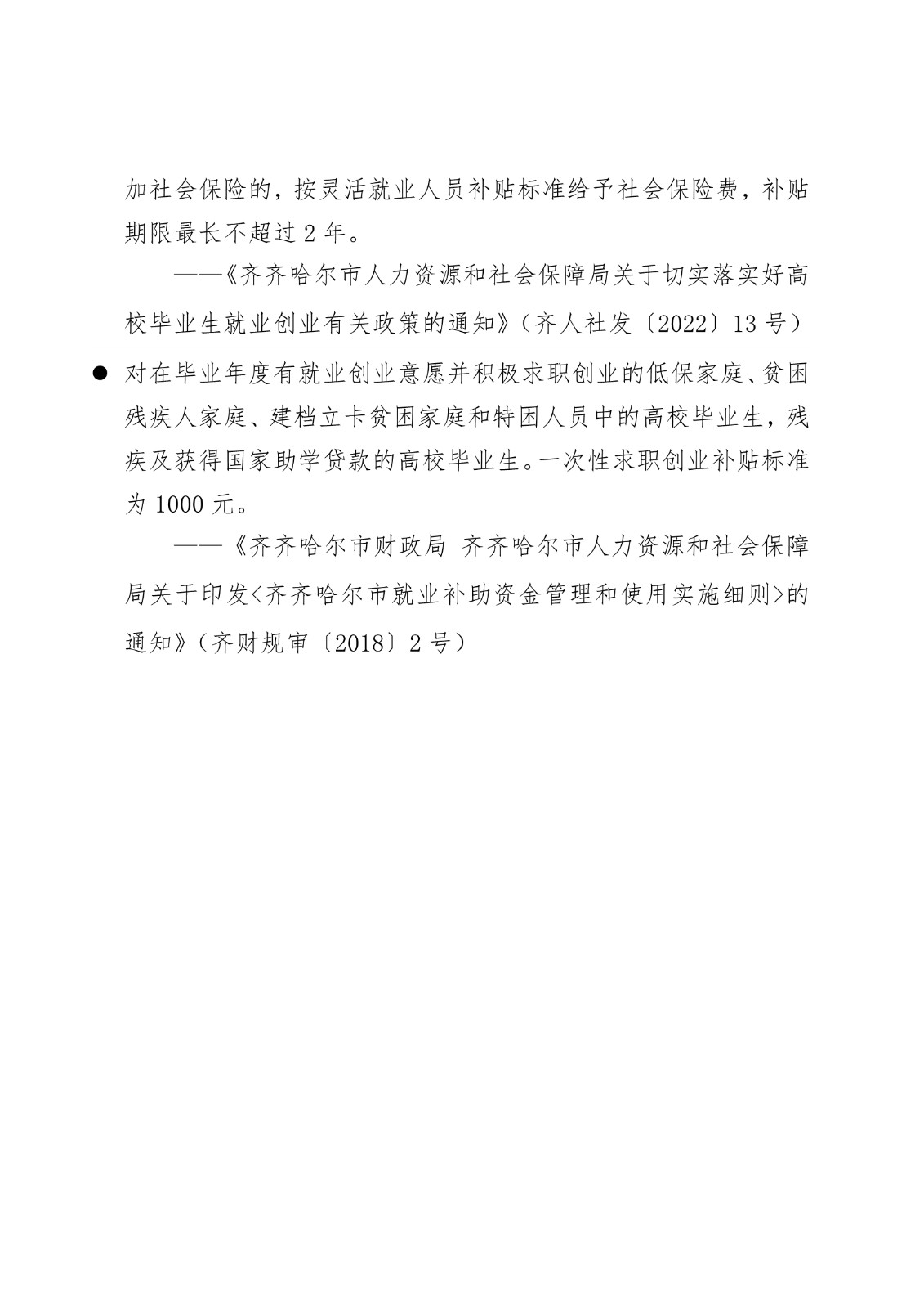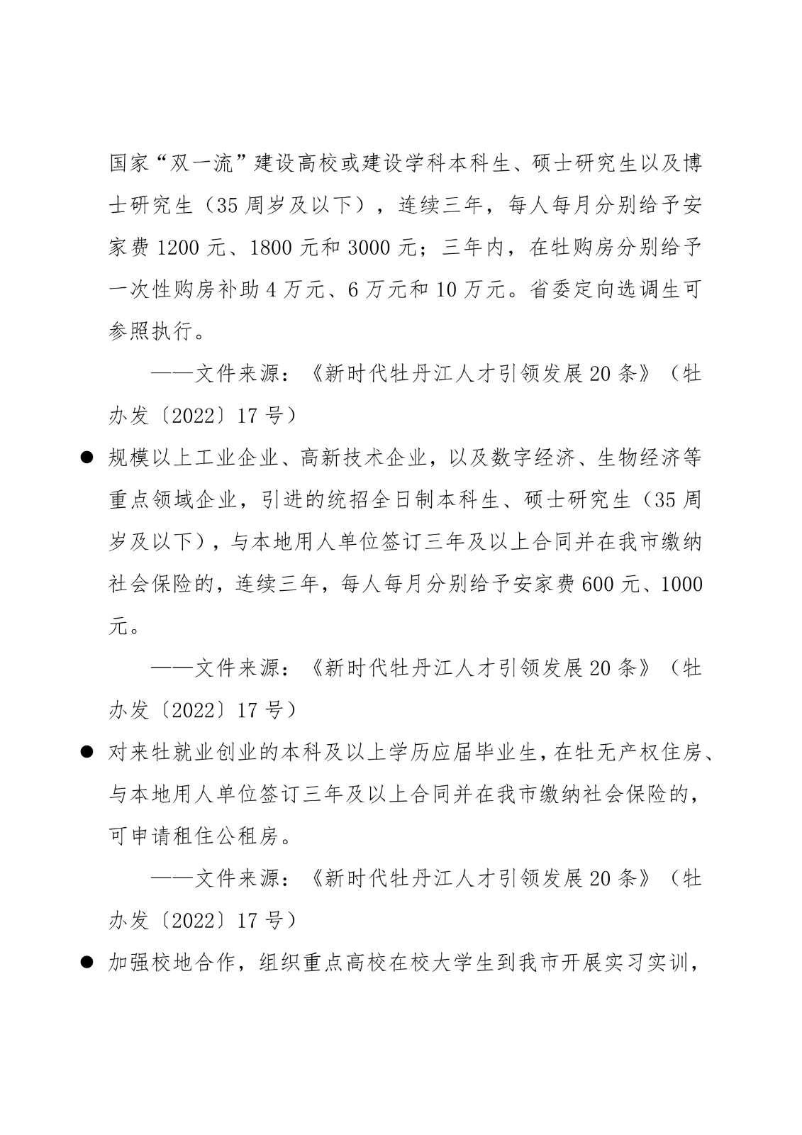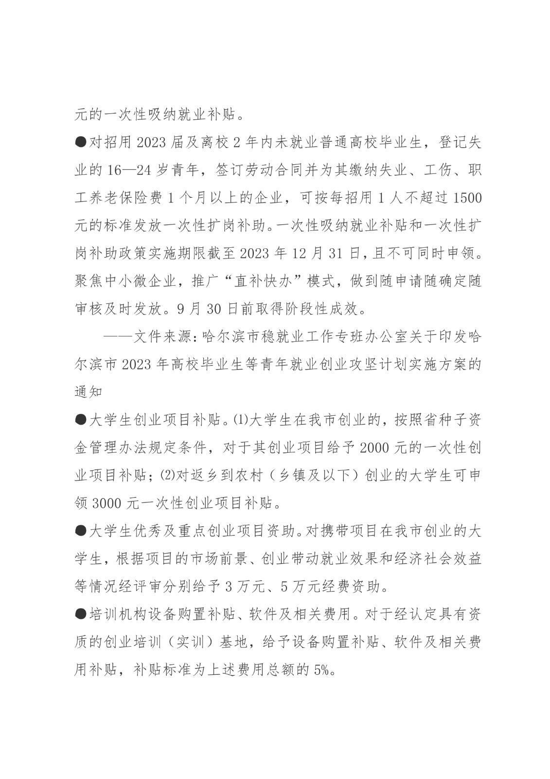 黑龙江省各地市高校毕业生就业创业政策摘录