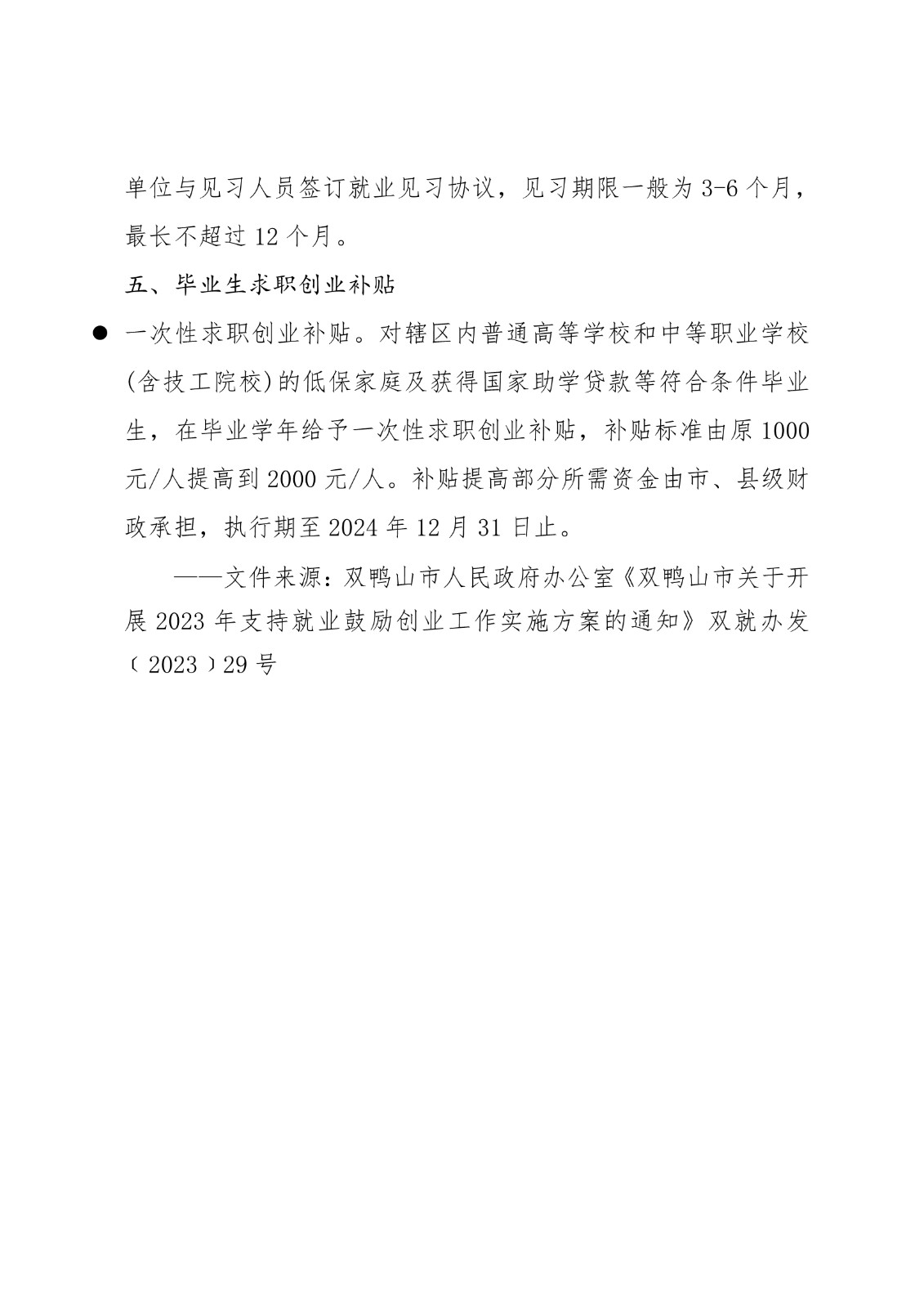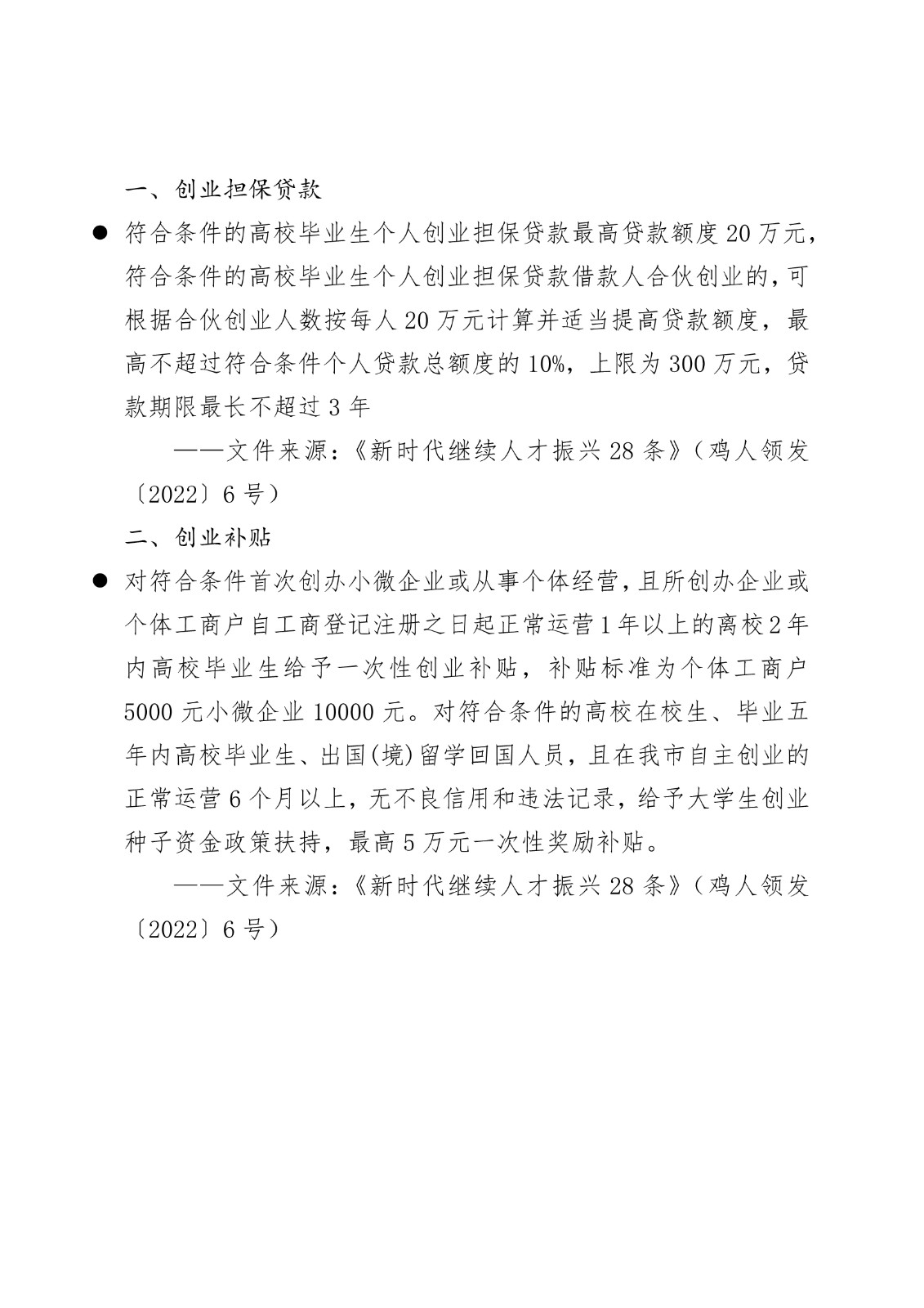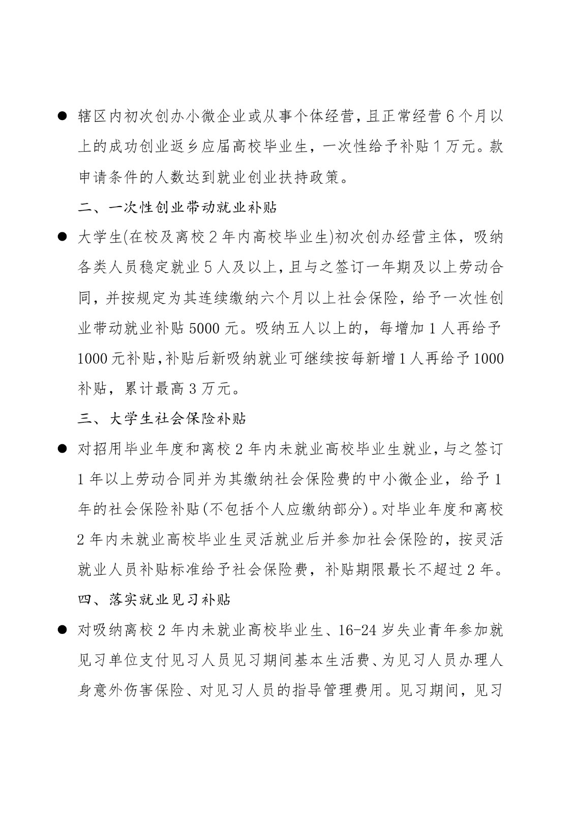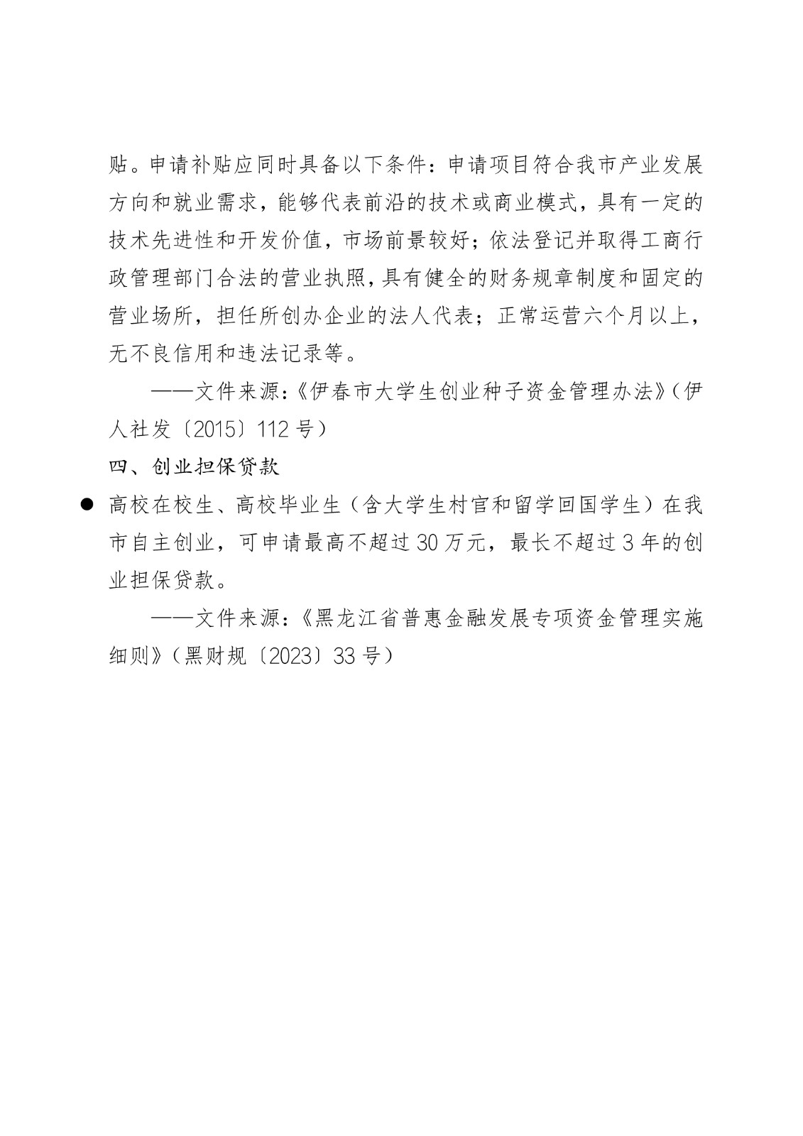 黑龙江省各地市高校毕业生就业创业政策摘录